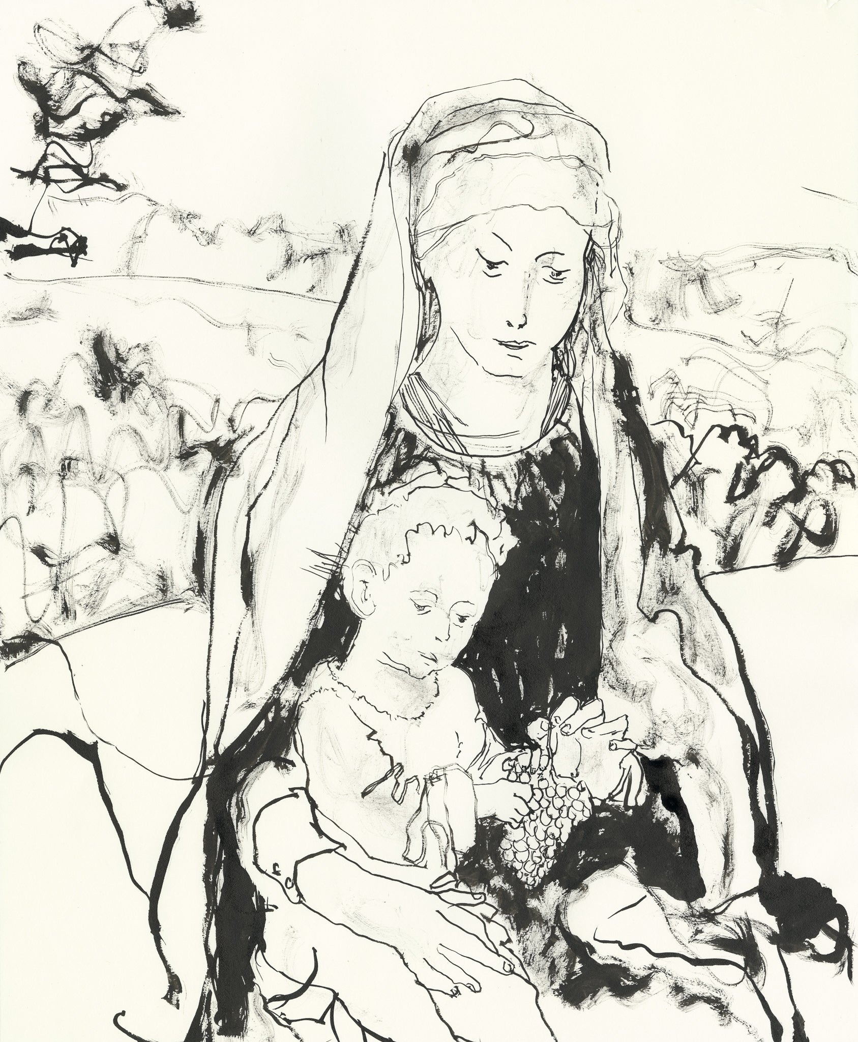 As part of my practice, I do studies of old master paintings. This is a study of a painting from the early sixteenth century, a painting of the Madonna and Child. I'm hoping it influences my current project.