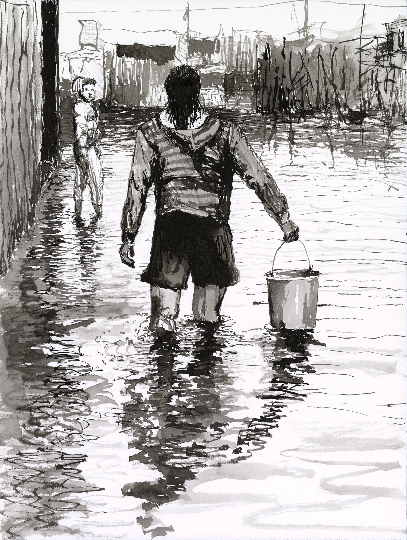 Climate change has warmed the ocean and the air so much that the atmosphere holds more water. A tropical storm that would normally have brought slightly elevated amounts of rainfall now causes devastating floods that leave the poor homeless.
