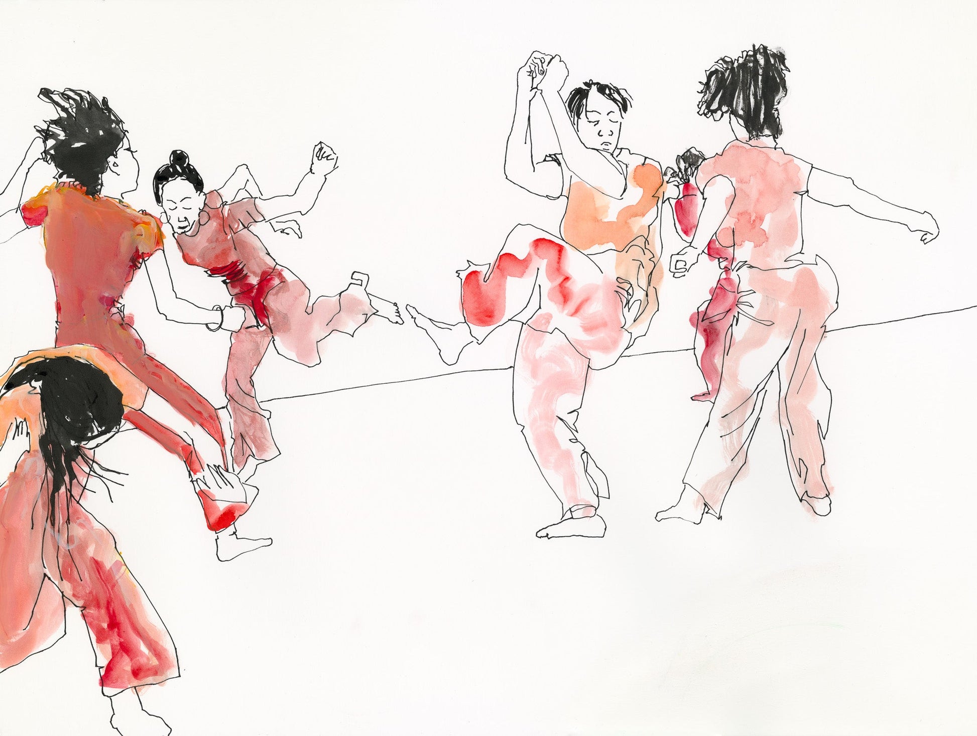 There's one moment in the dance when all the dancers move frenetically and it's just crazy fun. From an artistic perspective, I wanted to capture the order in the chaos, but still keep the fun. I also like the shades of Japanese anime in here. It's really a beautiful drawing, and a cool print.