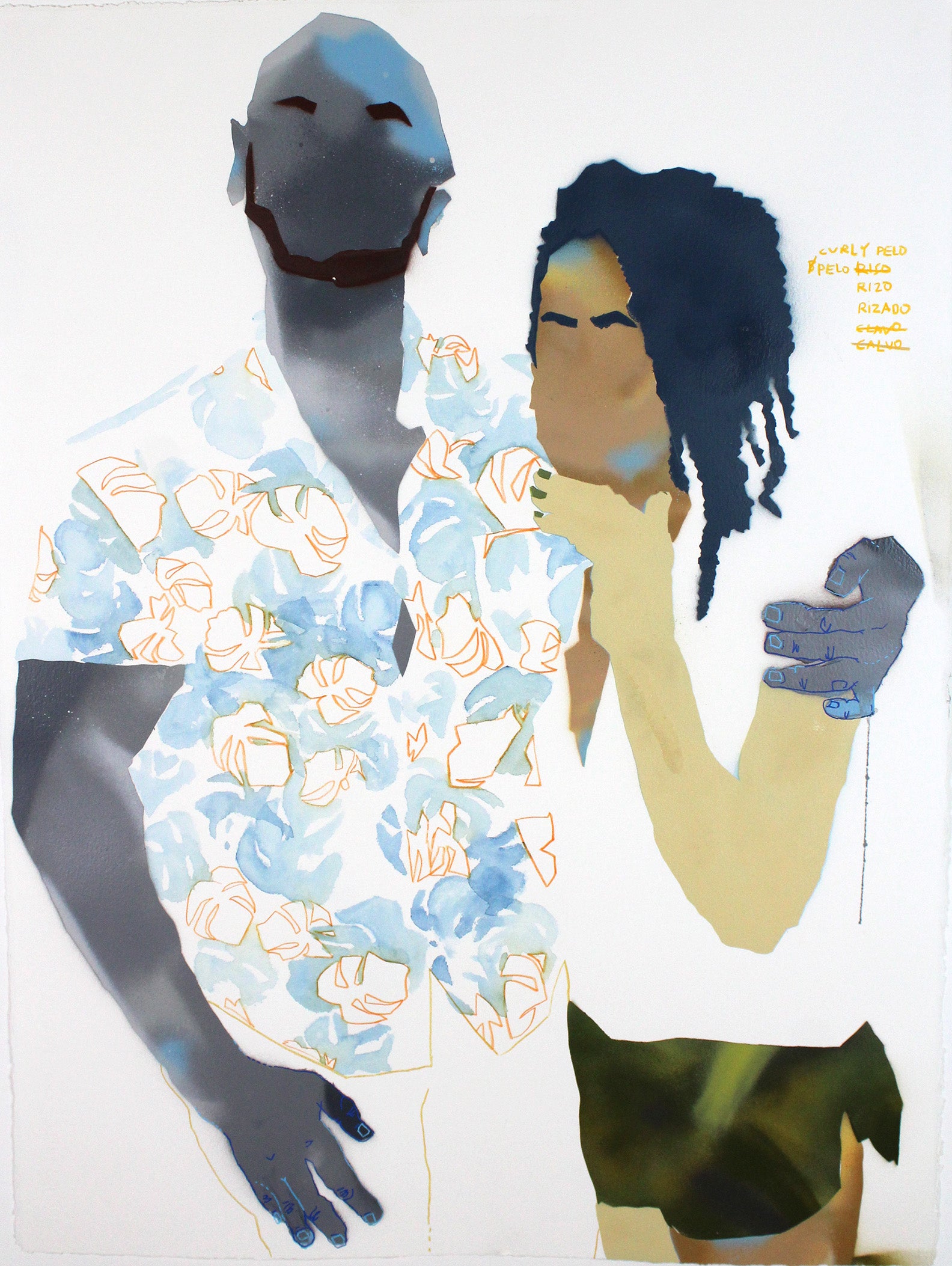 Spray Paint, Watercolor and Pencil on Paper